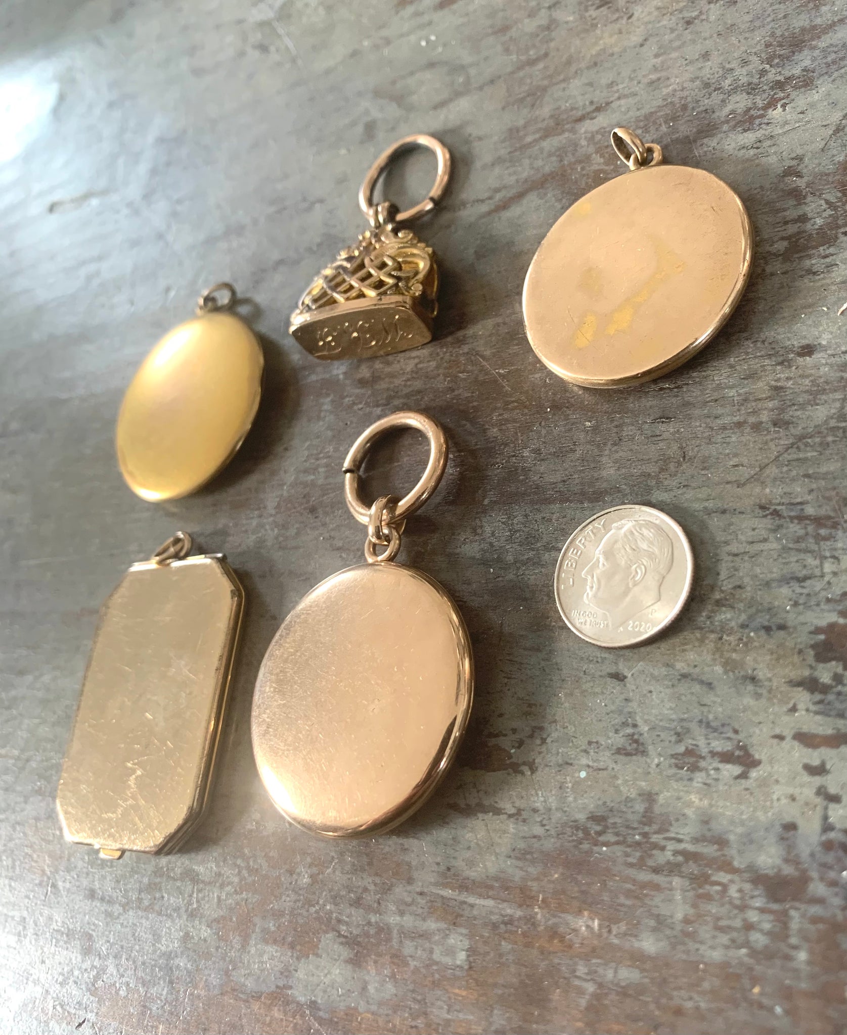This Edwardian locket has a fancy monogram CS . It measures 1 1/4” in diameter. It will hang 1.5” long with its original bail. It too is a beauty. Harder to find just two initials! Has a few very slight dimples on the back. The front is perfect. Closes with a click as it should. Last photos shows it playing with others sold separately.