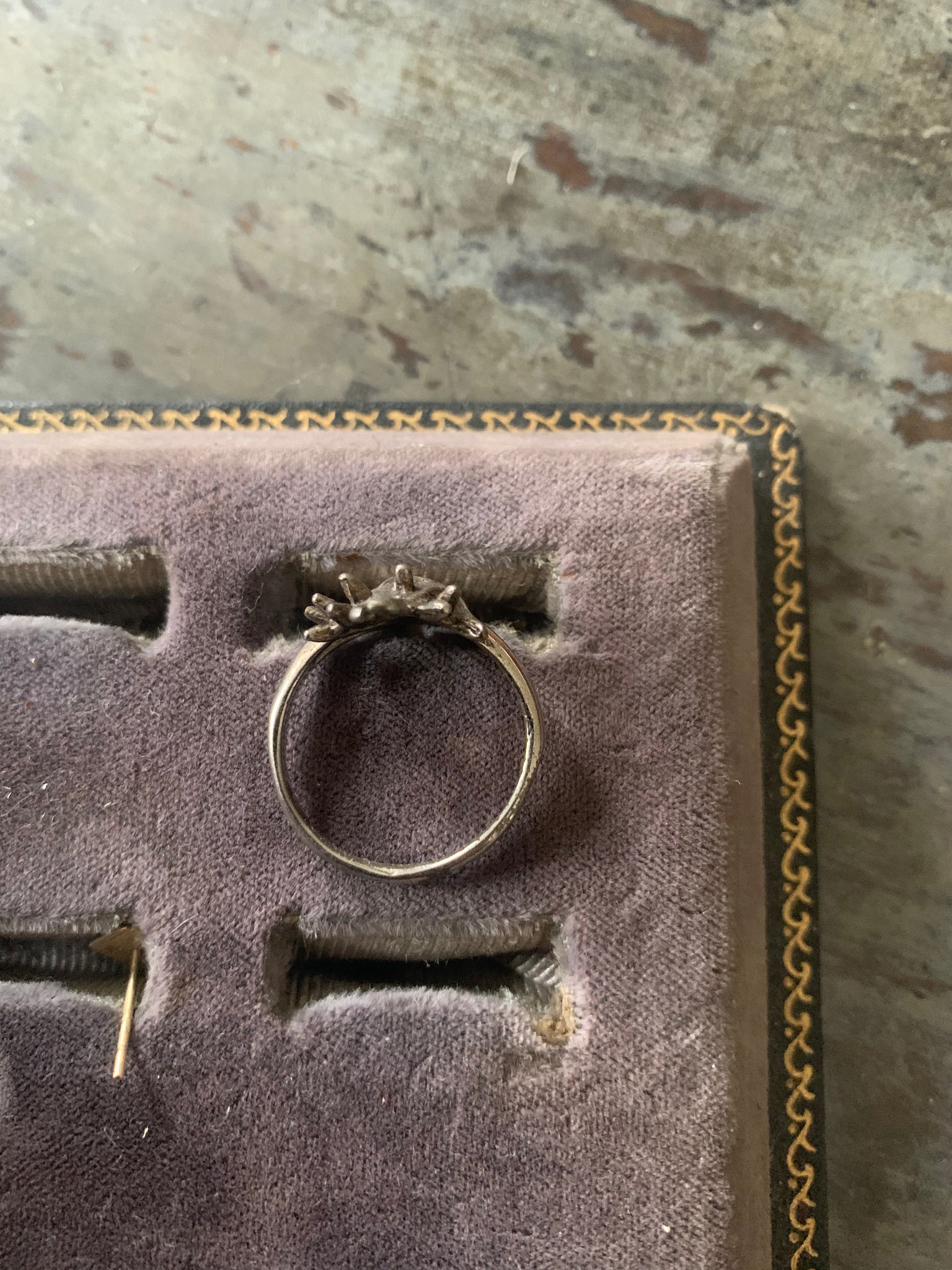 Spiked Skull in Sterling Silver makes this a fun ring. Signed , hallmarked by G& S ‘86. Size 8 3/4. Another great vintage skull ring that is well made. This one is great for a smaller finger.I believe you can dangle something from the loop on the top of the skull?Add a charm?