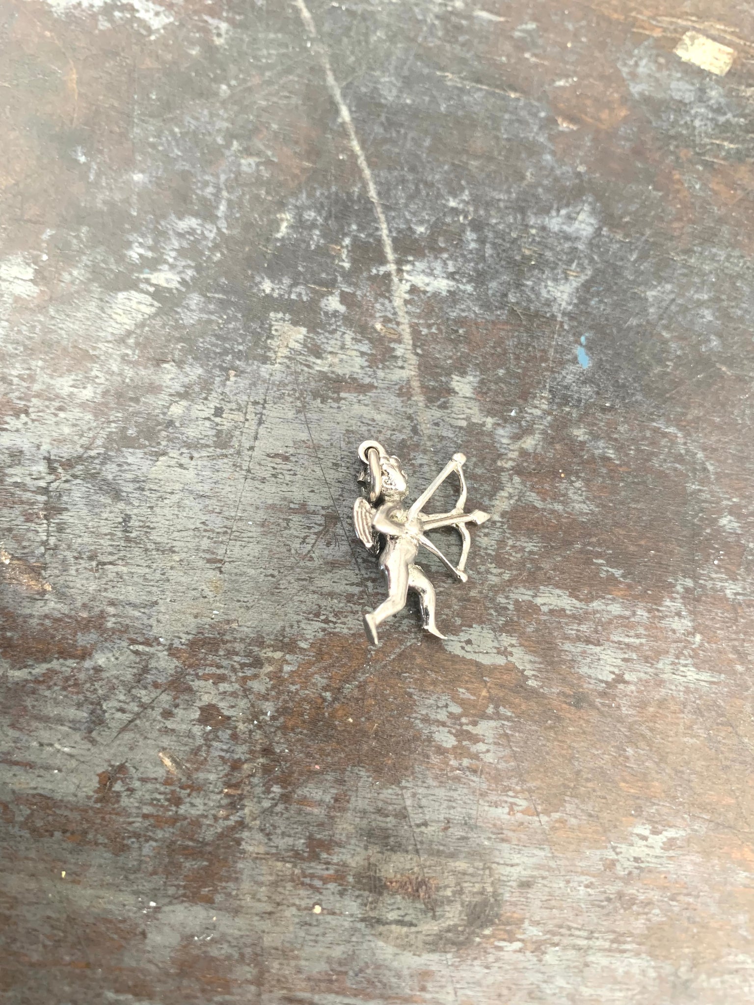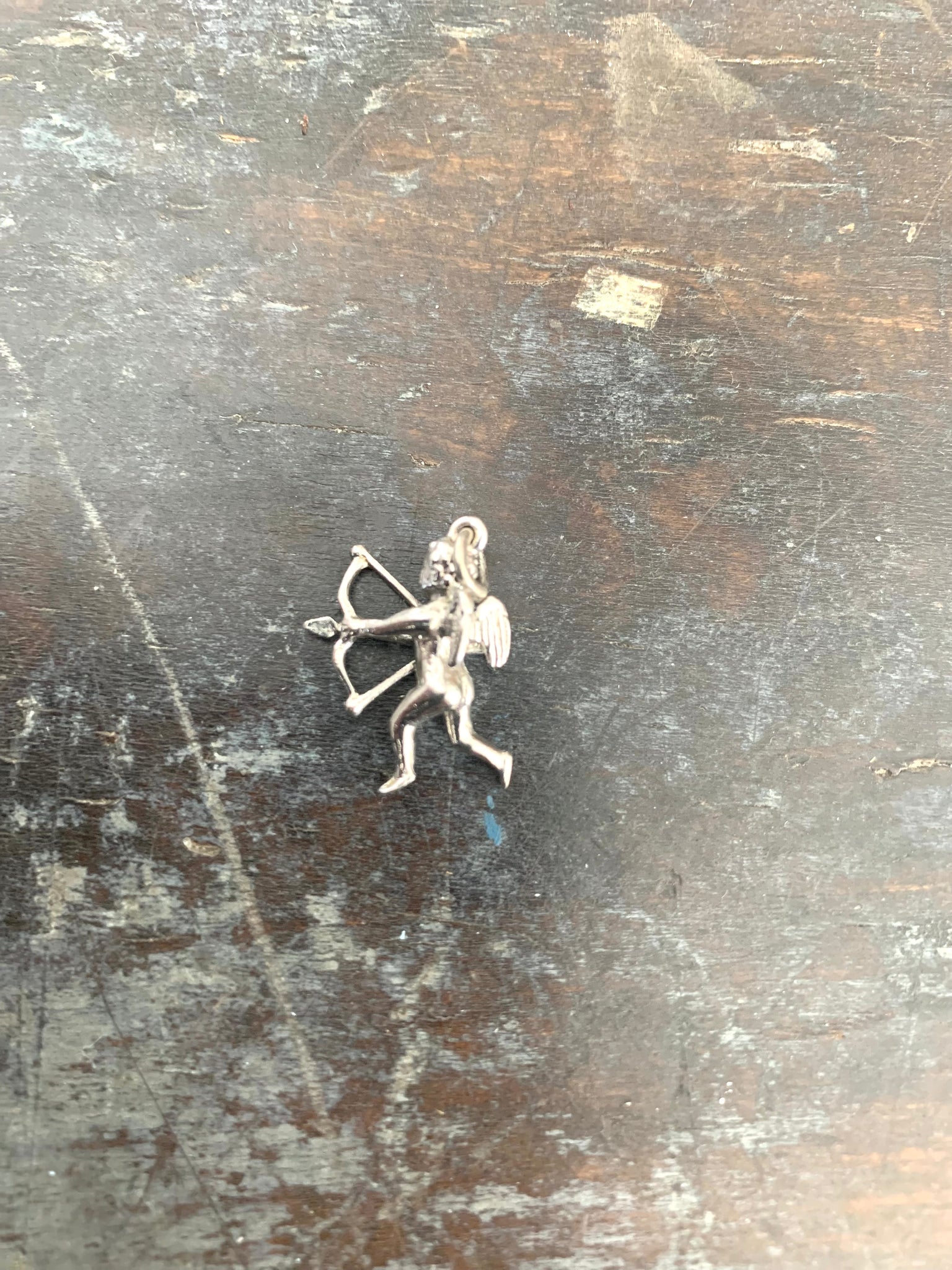 This little guy too,is a sweet cherub charm.He measures 3/4" long by 5/8" wide from the arrow to the wings.He is marked but I cannot make it out.Sterling Silver for sure.